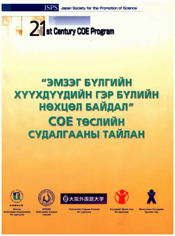 | Судалгааны төсөл | Эрдэм шинжилгээний номын сан Үндсэн фонд | 362.76 Э 531 | Available | 2023.05 | 2024.06 | ATNS-M04971 | |