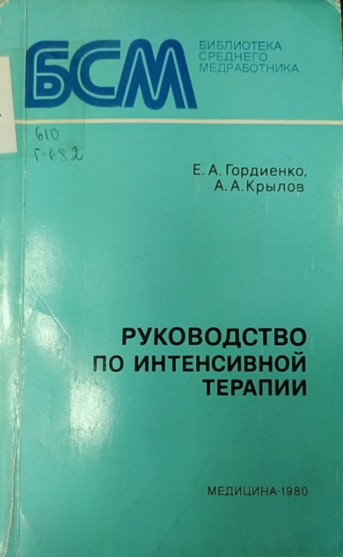 Гордиенко Е.А, Гордиенко Е.А and Крылов А.А. Руководство по интенсивной терапии. Л: Медицина. 1980.
