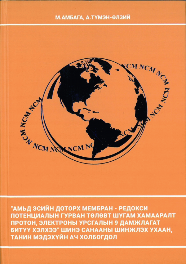 Амбага М, Түмэн-Өлзий А and Шинэ Анагаах Ухааны Их Сургууль. (2018). "Амьд эсийн доторх мембран-редокси потенциалын гурван төлөвт шугам хамааралт протон, электроны урсгалын 9 дамжлагат битүү хэлхээ" шинэ санааны шинжлэх ухаан, танин мэдэхүйн ач холбогдол. Улаанбаатар: Мөнхийн үсэг.