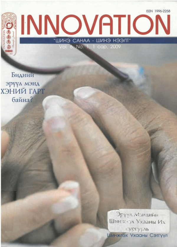 Дэлхийн эрүүл мэндийн төлөөх түншлэл ТББ, Эрдэнэхүү Н, Тэмүүлэн Э, Одхүү Э, Буянтөгс Ц and Дэлхийн эрүүл мэндийн төлөөх түншлэл ТББ. Innovation = Шинэ санаа, шинэ нээлт. Улаанбаатар: . 2009.