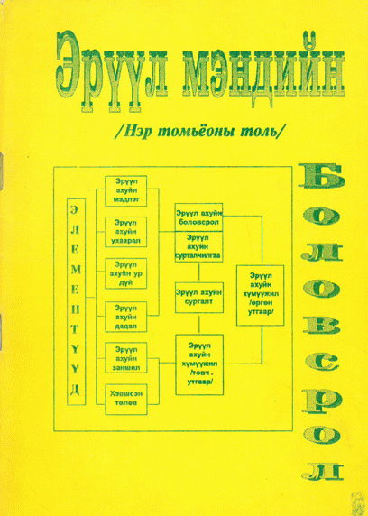 Цэрэнжигмэд Г., Уртнасан Ч. and Анагаах Ухааны Их Сургууль. (1997). Эрүүл мэндийн боловсрол: Нэр томьёоны толь. Улаанбаатар: Эрүүл энх хэвлэлийн газар.
