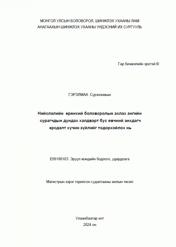 Диссертаци Магистр Анагаахын Шинжлэх Ухааны Үндэсний Их Сургууль 2024