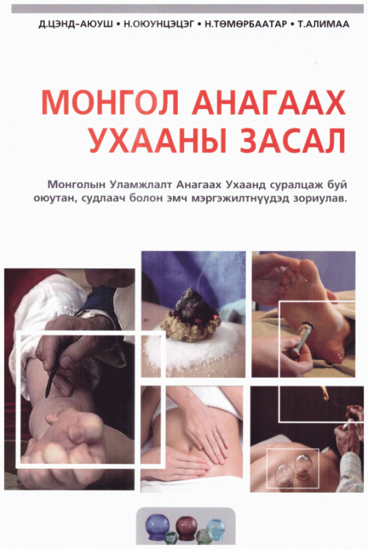 Монгол анагаах ухааны засал : Монголын уламжлалт анагаах ухаанд суралцаж буй оюутан, судлаач болон эмч мэргэжилтнүүдэд зориулав /Зохиогч: Н. Оюунцэцэг, Д. Цэнд-Аюуш, Н. Төмөрбаатар, Т. Алимаа.