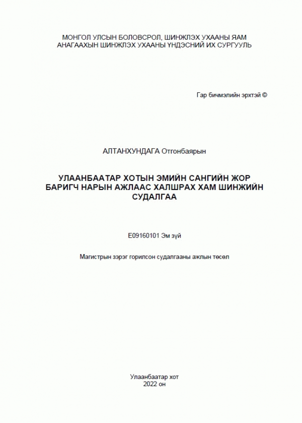 Алтанхундага О., Мөнхбат С. and Анагаахын Шинжлэх Ухааны Үндэсний Их Сургууль. (2022). Улаанбаатар хотын эмийн сангийн жор баригч нарын ажлаас халшрах хам шинжийн судалгаа. Улаанбаатар: [Хэвлэлийн газар тодорхойгүй].