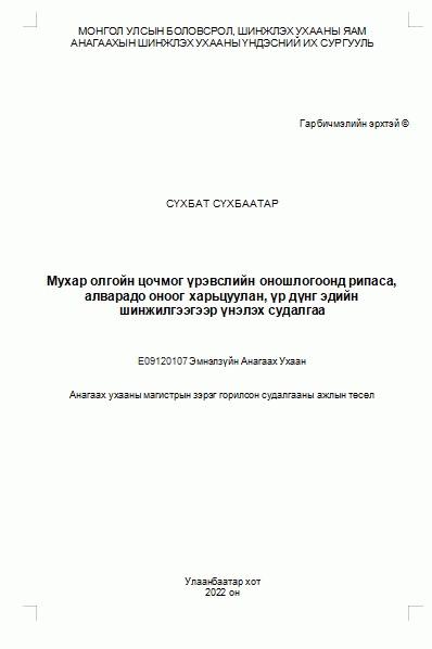 Dissertation note: Диссертаци Магистр Анагаахын Шинжлэх Ухааны Үндэсний Их Сургууль 2022