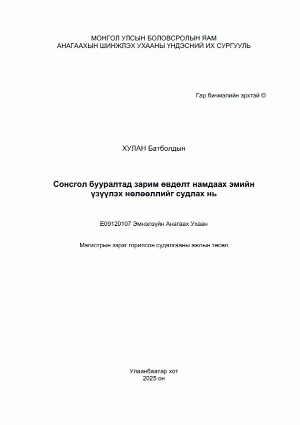 Online resources: Dissertation note: Диссертаци Магистр Анагаахын Шинжлэх Ухааны Үндэсний Их Сургууль 2025