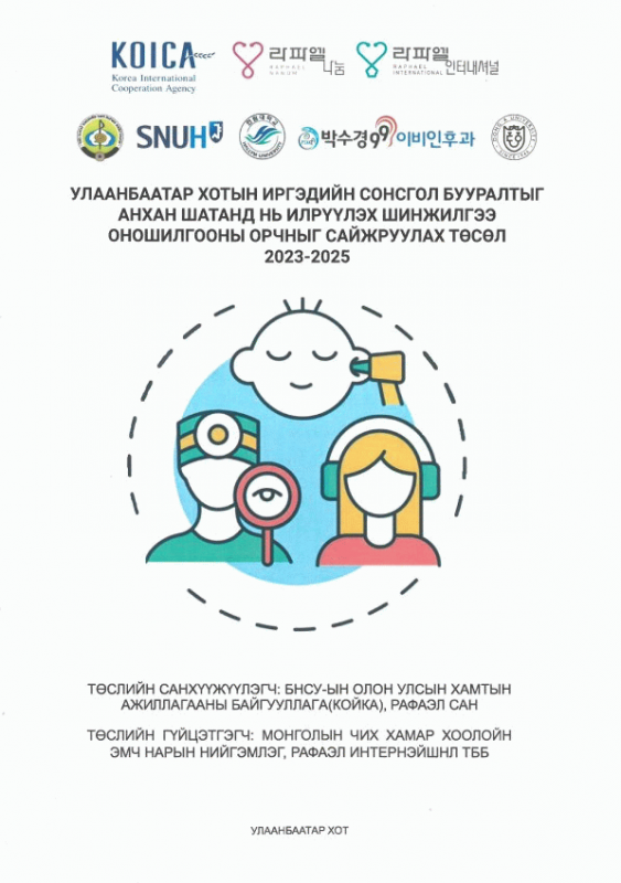 KOICA, Рафаэл сан and Монголын Чих х. х. э. н. н. (2025). Улаанбаатар хотын иргэдийн сонсгол бууралтыг анхан шатанд нь илрүүлэх шинжилгээ оношилгооны орчныг сайжруулах төсөл 2023-2025. Улаанбаатар: .