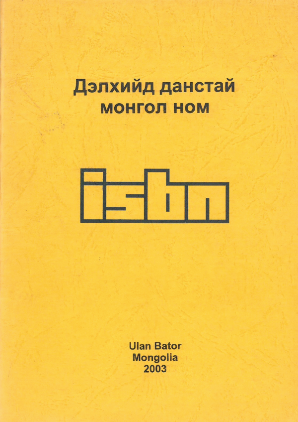 ISBN-Монголын Үндэсний Товчоо, . 2003. Дэлхийд данстай Монгол ном = Mongolian Books the International Registry. Улаанбаатар: Урлах эрдэм.