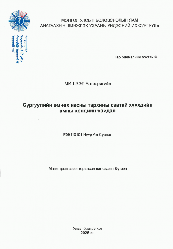 Dissertation note: Диссертаци Доктор (Ph.D) Анагаахын Шинжлэх Ухааны Үндэсний Их Сургууль 2025