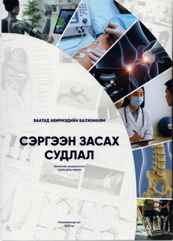 Сэргээн засах судлал: Сурах бичиг: Анагаах ухааны их, дээд сургуулийн оюутан, сэргээн засах анагаах ухааны мэргэжлээр суралцагсад, сэргээн засахын эмч, мэргэжилтэн нарт зориулав /Зохиогч: А. Балжинням, Ш. Батчимэг, Ц. Наранцэцэг, Г. Даваасүрэн, С. Сувдмаа, Э. Уянга; Редактор Я. Энхтөр; Хэвлэлийн эх бэлтгэсэн: Д. Энхнасан; Хавтасны дизайн: Г. Маралгуа, А. Энхбаяр. by