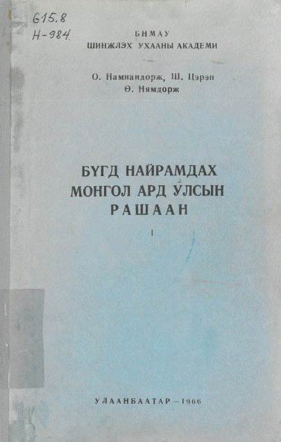 Publisher: Улаанбаатар: Улсын хэвлэлийн газар, 1966