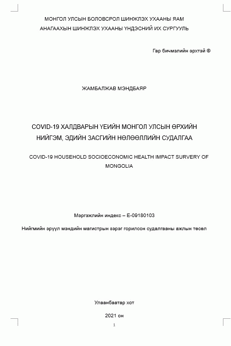 Original language: Mongolian 2020 Улаанбаатар,